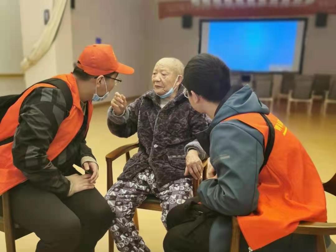 像杨大爷这样,养老院中有多位退役军人在此休养。张美毅老人今年93岁,是参加过解放战争的老革命,解放后从野战部队转到福州军区空军部队,转业后在九江市二轻局离休。虽然年迈体弱,病痛在身,但军人刚毅、忠贞、乐观的气质依然可见。他向大学生们讲述了解放济南的生死考验,感叹共产党带给他们的新生活。“听了老党员的故事,我深深地敬佩他们一辈子忠于革命、坚守初心的境界,感受到了共产党人的魅力。”大学生志愿者、入党积极分子程辛雪同学表示。