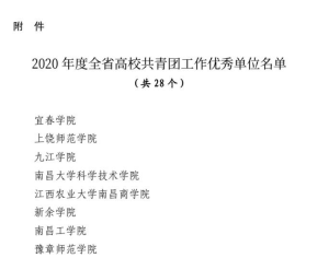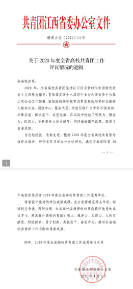 近日,团省委印发《关于2020年度全省高校共青团工作评议情况的通报》(赣青办发〔2021〕14号),我校团委获评2020年度全省高校共青团工作优秀单位。