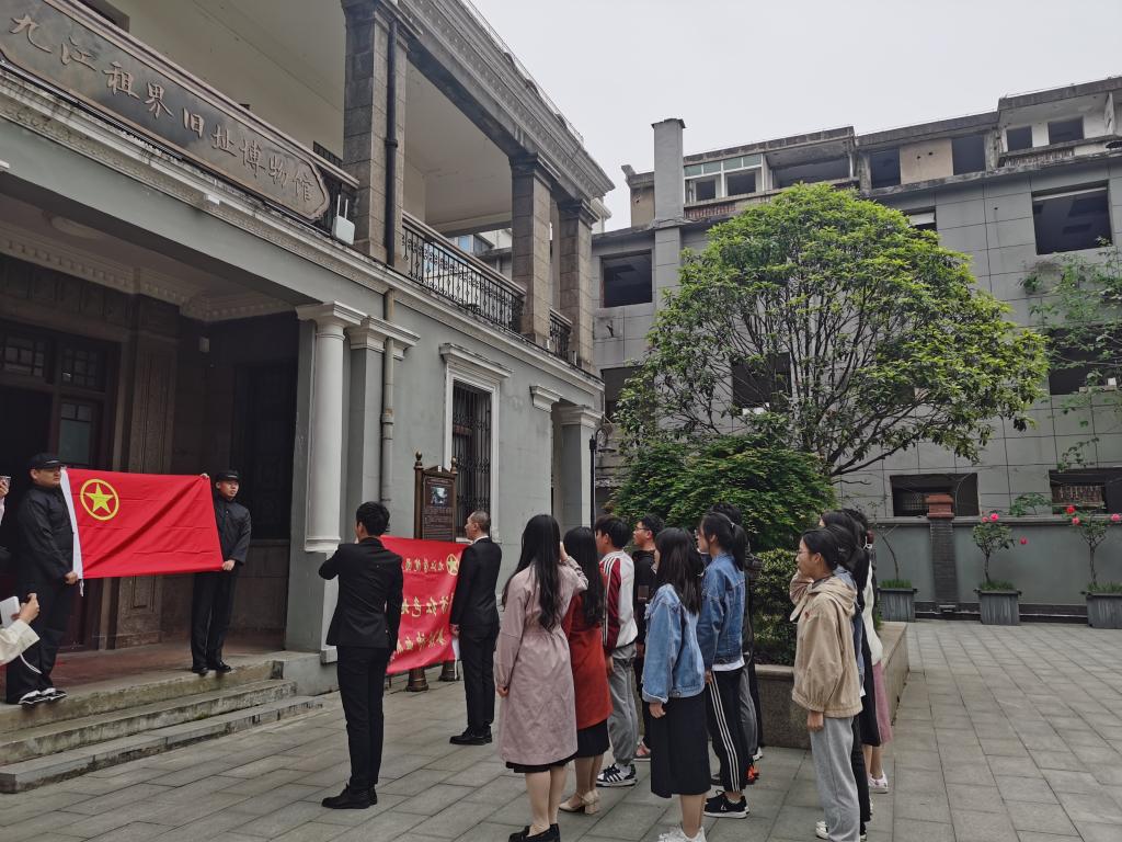 这是校团委情景党课《九江人民收回英租界》中,青年学生在日本领事馆旧址前的呐喊。这一情景党课,是以1927年中共九江地委书记曾延生、国民革命军第六军政治部主任、共产党员林伯渠、国民革命军独立第二师师长贺耀祖等为原型,依托九江人民收回英租界旧址,实景再现大革命时期,九江军民联合收回英租界的故事。