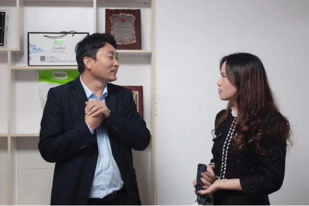 (王晴博士(左一)实地考查调研,对绿游公司农产品推广提出针对性建议)