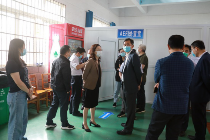 5月22日中午,国家卫健委职业卫生中心副主任徐克明率国务院联防联控机制江西工作组一行4人来我校检查指导新冠病毒疫苗接种工作。省卫健委党组成员、副主任钭方芳,省卫健委血地处处长谢建文,省第二指导组组长、省交通运输厅二级巡视员彭瑜,副组长、省卫健委规划发展与信息化处二级调研员陈华新,九江市政府副市长李军,市政府副秘书长黄效兵,市卫健委主任周泽甫,市卫健委副主任孙勇军等陪同检查。我校党委书记赵伟,副校长杨耀防热情接待了工作组一行。
