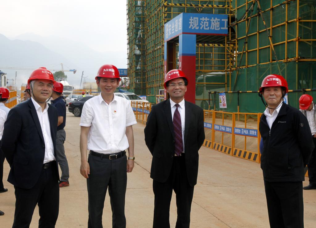 宜春学院校领导一行首先来到我校在建的第二附属医院和紫薇园,听取了项目基本情况介绍,实地考察了项目建设情况。李雪南和曾晓春表示, 热火朝天的建设场面令人赞叹,倍感震撼。