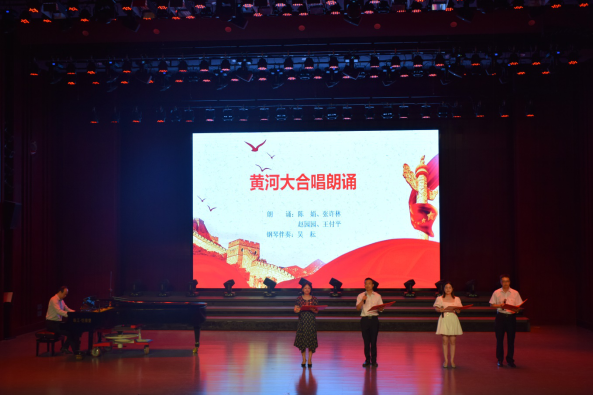 活动在讲述冼星海和《黄河大合唱》创作故事中拉开序幕。伴随着钢琴伴奏《黄水谣》,四名党员深情地朗诵《黄河大合唱》词,观众仿佛听到了黄河在怒吼、在咆哮,仿佛看到了人民在抗争、在奋斗,感受到了伟大的中华民族自强不息的精神。