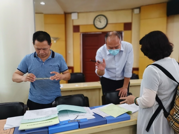 汇报结束后,专家组在会议室集中查阅了实验室安全管理组织体系、规章制度、培训演练、检查台账等档案资料,重点对危化品管理台帐、危化品处置管理、特种设备管理制度等材料进行了仔细的检查。