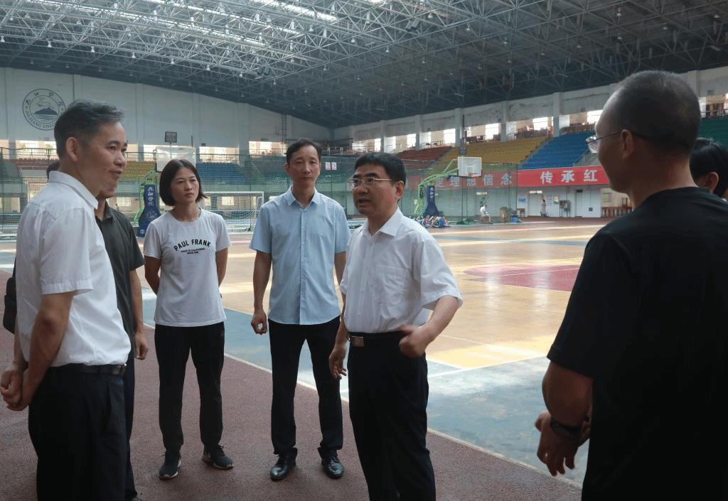 7月10日上午,九江市委常委、副市长蒋文定到我校调研指导省运会体育赛事场馆建设。我校党委书记赵伟,市政府副秘书长范贵芳,省运会筹备执委会场馆建设部副部长陈峰、朱军,市体育局和我校党政办、体育学院负责人陪同调研。