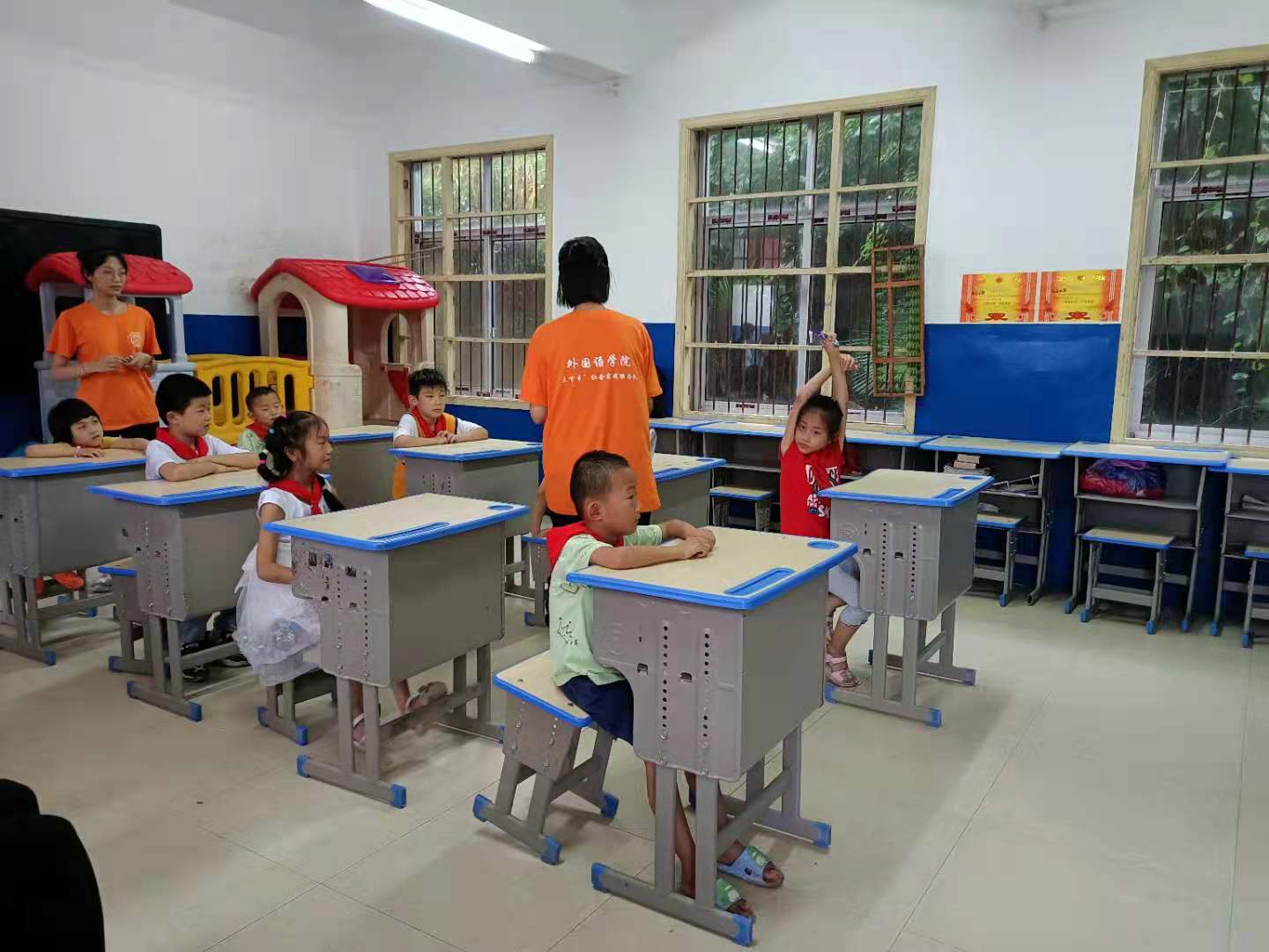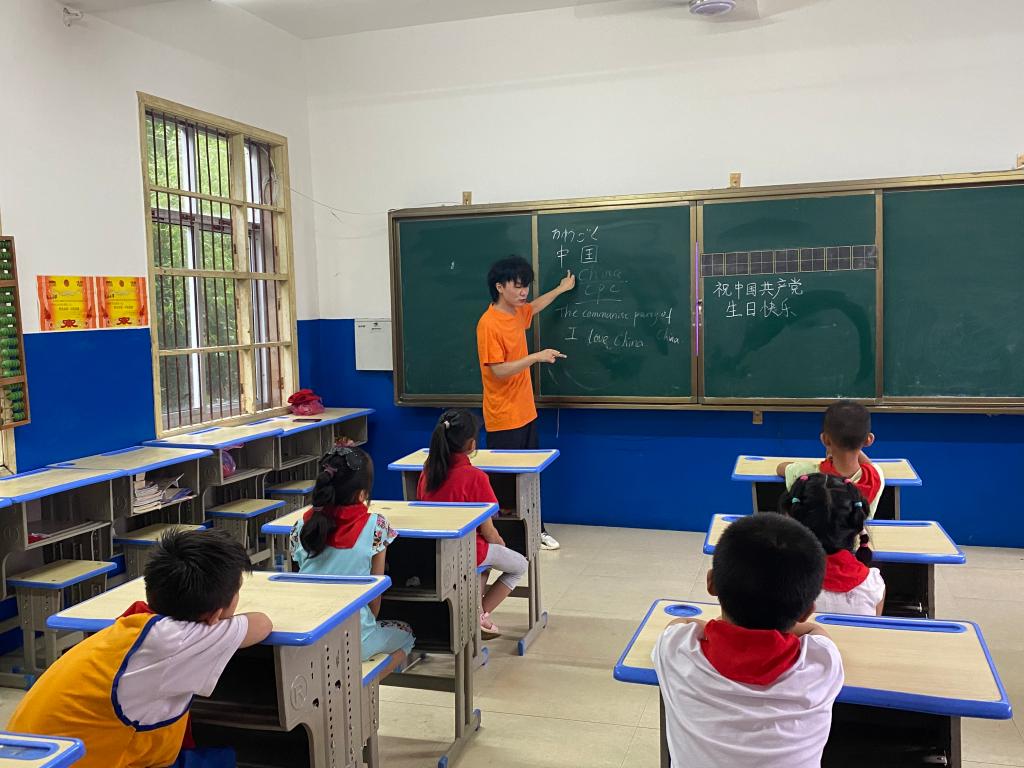 “看着他们清澈的眼睛,那种对知识的渴望感动了教学的外院同学,真希望能多教给他们一些知识,多讲述一些红色故事。”实践队员余金珂激动地说。“我们非常喜欢各位老师,他们讲的故事真有意思,我们也学会了用英语讲‘我爱你,中国’、‘我爱中国共产党’,谢谢