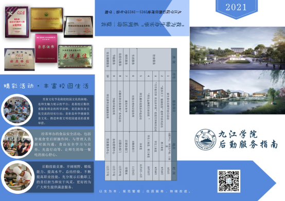 后勤服务指南是饮食服务中心的迎新重头戏,为方便新生及家长,在2021级新生的录取通知书里面,有一张后勤管理处精心设计的指南,正面为后勤处“我为师生办实事”系列活动一览表,反面为我校各个校区的平面图。其中,各学生食堂的具体位置、经营特色一目了然。后勤处的各类活动琳琅满目。在学校后勤处的网站里同时也链接了这个指南,使得2021级的新生们一进校园就对后勤服务、特色美食了然于胸。不少新生在贴吧里留言表示这样周到的设计让他们体会到了后勤服务的细致与贴心,还没到校就已经感受到了后勤饮服人的真诚与热情。