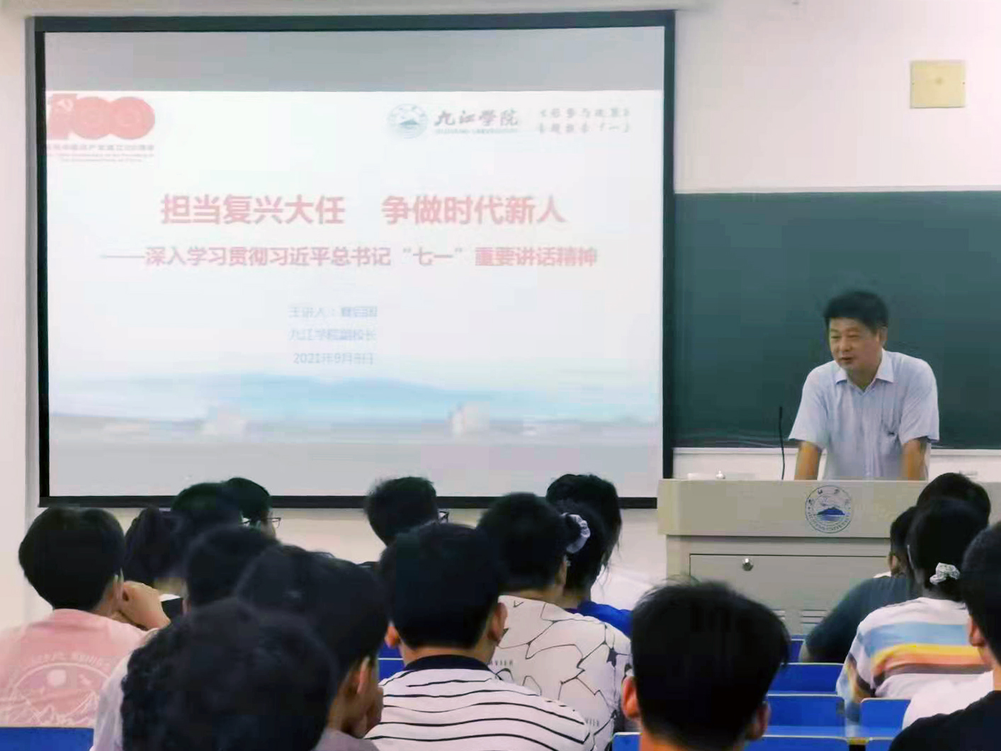 9月9日,刚刚入学报到的我校2021级新生迎来了他们的大学第一课。校党委书记赵伟,校长陈小林,副校长王万山、陈春生、杨耀防、夏启国、查振华,纪委书记李广欣,党委委员王殿元、冯健、刘遵海分头走上讲台,围绕学习贯彻习近平总书记“七一”重要讲话精神、做好疫情防控、树立远大理想等内容,为新生讲授了大学第一堂思政课。