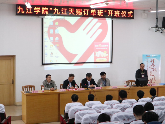 据介绍,我校每年设立一个“九江天赐订单班”,招收化学化工、环境等相关专业学生。学生入选订单班后,相关学习费用全部由九江天赐高新材料有限公司提供(6000元/学年),成绩居订单班前50%的同学还将获得“天赐奖学助学金”(800-1500元/学年)。本次共有10名学生参与“订单班”的培养,来自化学化工学院和资源环境学院。订单班的开设,是我校精准服务地方经济的又一次尝试,有效地实现了教育与产业、高校与企业的对接,实现学校与企业“优势互补、资源共享、互惠互利、共同发展”的双赢局面,将进一步推进我校的专业建设和人才培养工作向前迈进。