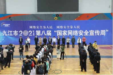 10月11日上午9:30,九江市第八届“国家网络安全宣传周”启动仪式在我校北区田径馆举行。副校长王万山出席仪式并致辞,市委网信中心副主任尹仁平主持启动仪式。我校党委委员、宣传部长冯健,市委宣传部互联网信息办专职副主任欧阳小竹,九江市公安局、教育局、国安局、工信局、总工会、团市委、妇联、人行九江中心支行、文广新旅局、九江新闻网等有关单位相关负责人和代表300人参加了启动仪式。