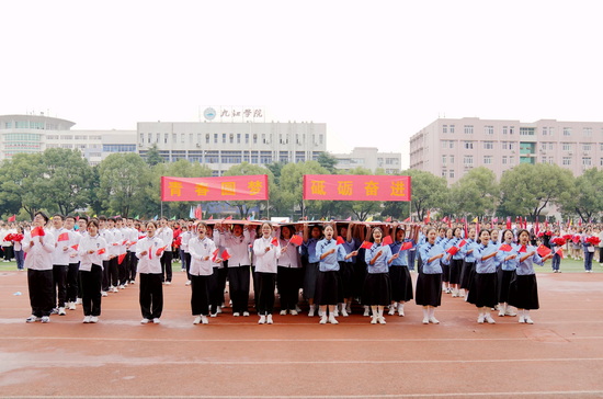 随后各二级学院22个运动员方阵也踏着矫健的步伐依次入场。在主席台前各二级学院将自己的专业特色融入方阵入场表演。时尚动感的音乐、青春曼妙的舞姿、铿锵响亮的口号,让人感受到了青春活力与力量、创造的激情;昂扬饱满的状态、勃发的英姿和别出心裁的方阵秀让现场的气氛瞬间热烈起来,掌声、欢呼声响彻云霄。