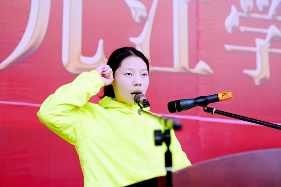 裁判员代表邹梦娇向大会进行庄严宣誓:坚决服从裁判长的指挥,严格遵守竞赛规则和裁判员纪律,尊重参赛选手、礼貌裁判、准确、公平、公正,圆满完成裁判工作!