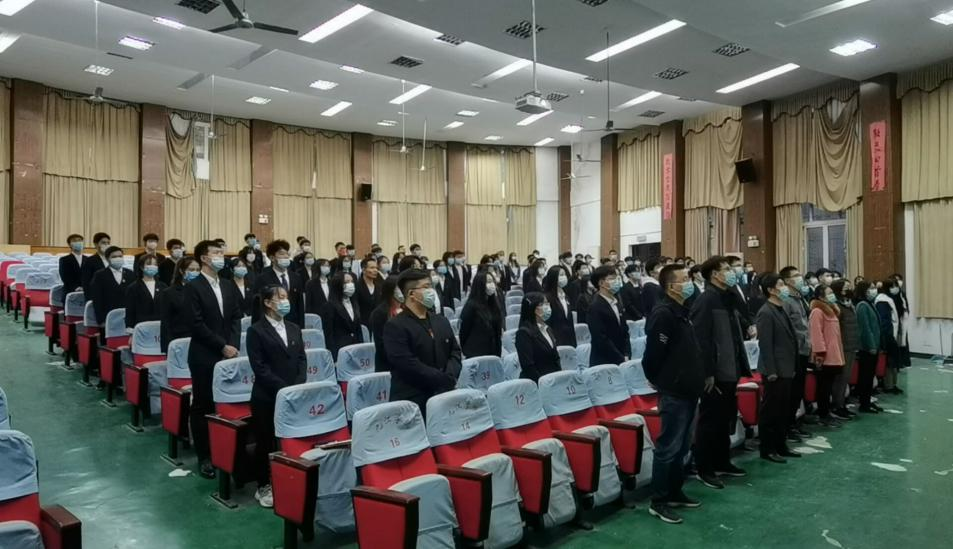 11月14日下午,在计算机学院2021年学代会暨团委学生会干部换届大会会议前,与会人员在报告厅高声齐唱《没有共产党就没有新中国》。