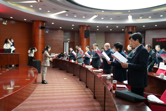 11月11日,我校党委理论学习中心组学习(扩大)会议前,全体与会领导干部齐唱《我们走在大路上》,为“唱响红色经典 凝聚奋进力量”活动拉开序幕。
