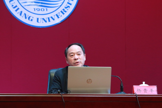 根据省委统一部署,12月7日下午,我校在主校区大礼堂举行学习贯彻党的十九届六中全会精神宣讲报告会,省委宣讲团成员、省工信厅党组书记、厅长杨贵平作宣讲报告。校党委书记赵伟主持报告会。在家校领导、正处级领导干部及教师、学生代表300余人聆听了宣讲报告。
