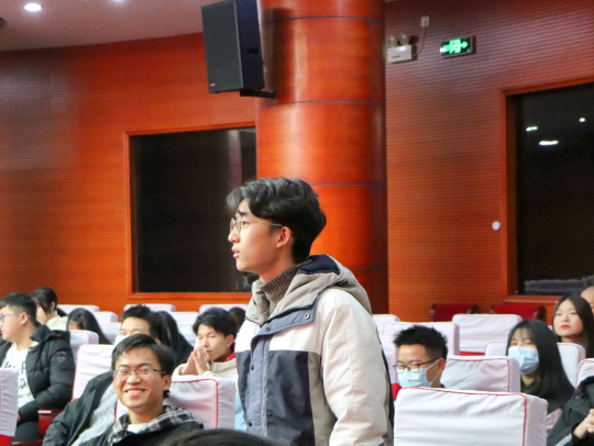 提问环节中,现场气氛十分活跃,台下的学生们都积极地提出自己对于恐龙的思考和疑惑之处,李博士通过举例子、打比方等方式回答学生们的问题。