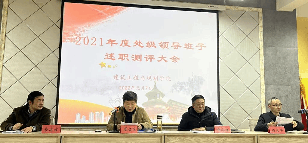1月7日下午,建工学院在望庐楼101召开2021年度处级领导班子述职测评大会。副校长夏启国在党政办相关负责人的陪同下出席会议。
