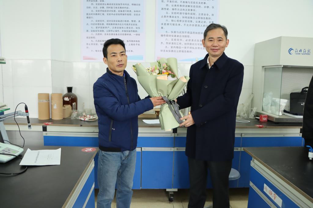 校纪委书记李广欣走访看望药学与生命科学学院教授戴四发博士。
