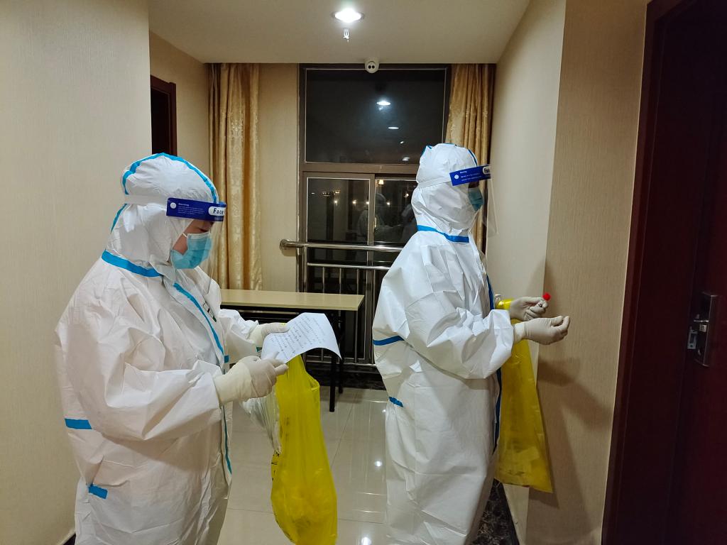 “嘴巴张大一点,再大一点,头往后仰,再仰一点”,24日下午五点,我校第一轮核酸检测圆满完成。校医院严格部署落实防疫措施,奔赴防疫阻击战最前线。记者在防疫现场,近距离记录下医务工作人员的辛勤与忙碌。