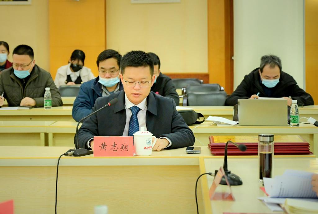 黄志翔董事长在会上致辞。作为我校外国语学院2011级校友,他在致辞中对母校数年来对终极科技集团的信任与支持,对他的培育与关爱表示了感谢,并介绍了2021年公司取得的成果和各项荣誉,展望了与学校合作的未来。他表示,将全力配合学校工作,深化与学校的合作,并预祝学校在第八届大赛中取得佳绩。