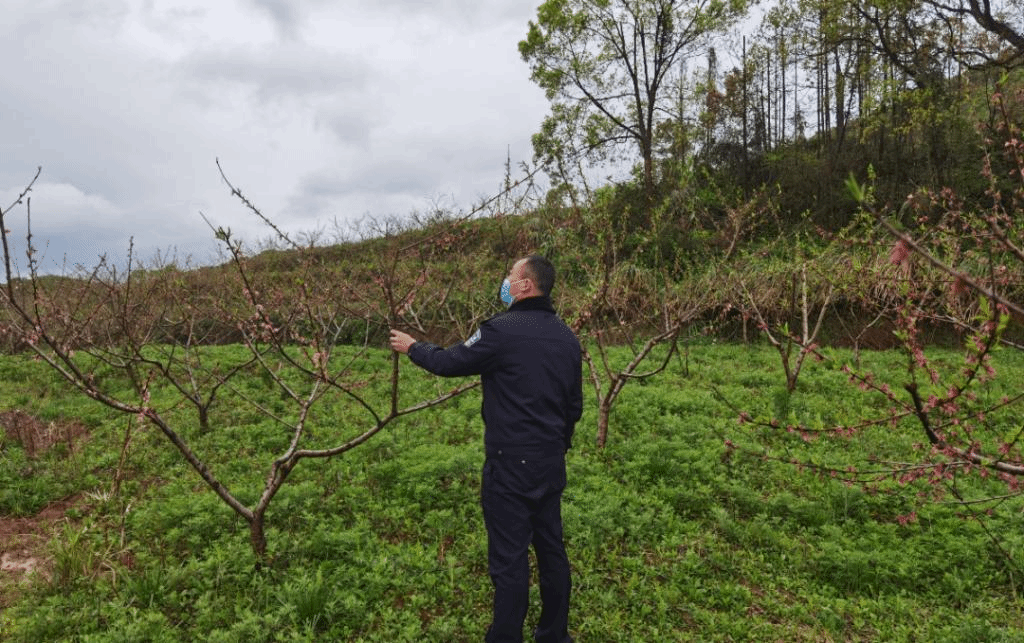 抗疫期间,杨月军忙着带着医护人员走村串户给行动不便的老人上门检测。同时,他还时刻牵挂村里的产业发展,一有空隙便去黄桃基地巡查桃树长势,看到盛开的桃花,他便随手拍一张发给执勤中的妻子说“待疫情散去,约看桃花盛开。”