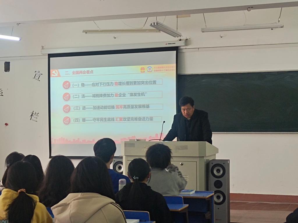 据了解,每学期由校领导和二级学院的领导为学生上思政课,已成为我校落实立德树人根本任务的一项优良传统,是学校加强大学生思想政治教育的一项重要举措,收获了同学们的一致好评。本次校领导聚焦“两会”精神进行专题授课,引导同学们进一步深入学习领会全国“两会”精神,把思想和行动统一到中央的部署要求上来,是我校深入贯彻落实“两会”精神、加强思想政治工作的一项重要举措。