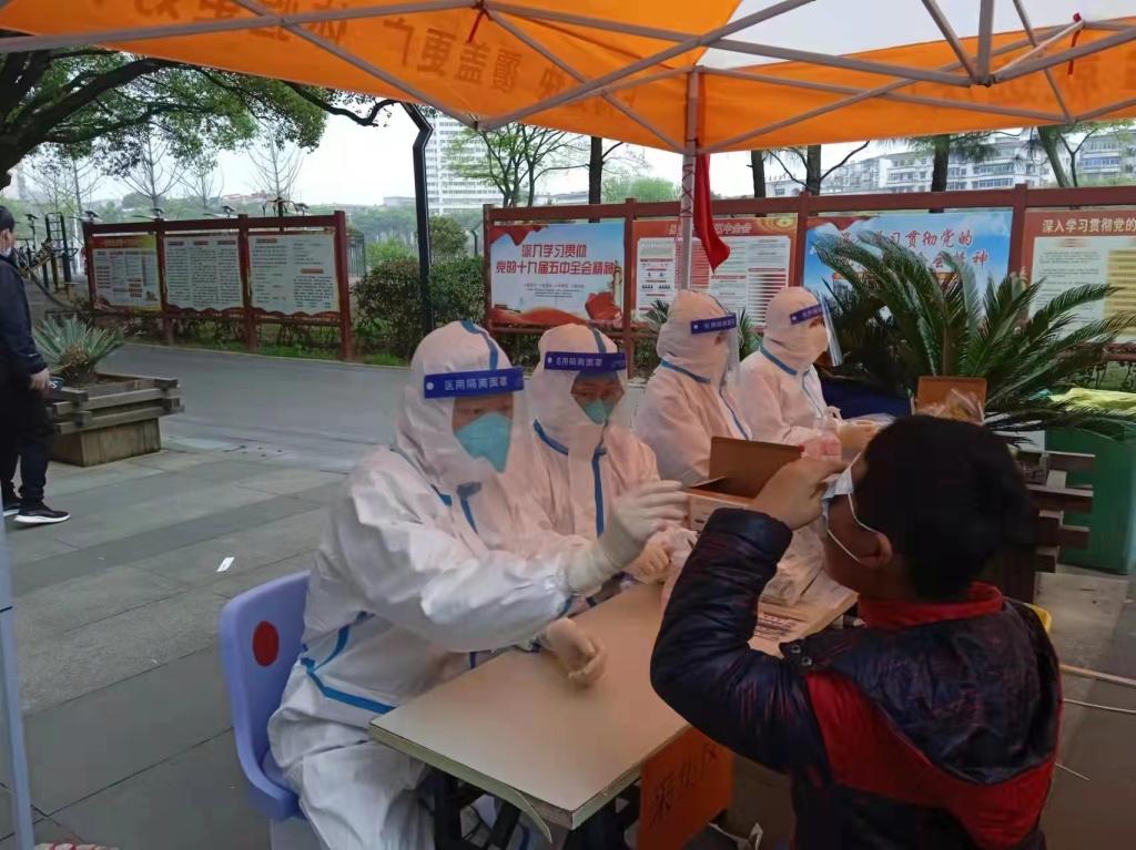 “我是党员我去,我不是党员我也去……” 一次队员们刚完成采样任务返回社区服务中心集合,董俊突然接到电话,由于人数增多急需派人增援采样点。“有没有同志愿意去?我们要成立临时突击队”。董俊对着队员们问道,队员们顾不上休息争先报名。“在关键时候队员们顾大局,讲奉献,积极报名,我当时鼻子酸酸的。”董俊说,在选好队员后,突击队伍一行迅速前往临时加派采样点,工作有条不紊地进行。居民们一句句“谢谢九江附院的医护、你们辛苦了”,所有的辛苦都值得。
