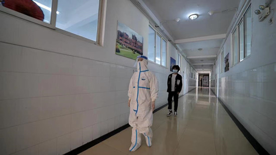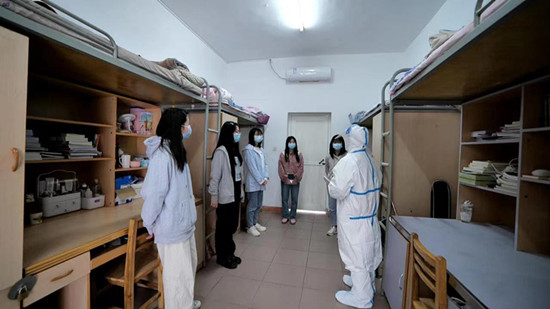 随后,杨耀防宣布演练开始。此次演练针对最新防控要求,以模块化设计开展,分别模拟教室、宿舍出现密切接触者或疑似人员情景。全流程演练“获取异常信息”“信息汇报”“防控工作组启动防控应急预案”“密接和疑似人员隔离”“次密接和相关人员隔离”“校园稳控”“行程轨迹排查”“校外转运”“校内风险人群监测”及“封闭后学生管理服务”等全环节演练,立足在实战化条件下,多角度全方位的检验全封闭下学校突发疫情应急处置流程中各部门应急响应、协调配合和规范处置的能力。