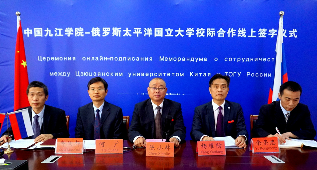 5月18日上午, -太平洋国立大学合作谅解备忘录线上签字仪式在竞秀楼405举行。我校校长陈小林,副校长杨耀防,国际合作交流处和理学院负责人,俄罗斯太平洋国立大学执行校长伊万秦科·谢尔盖·尼古拉耶维奇,国际事务处和数学模式与管理程序系负责人等参加了线上签字仪式。