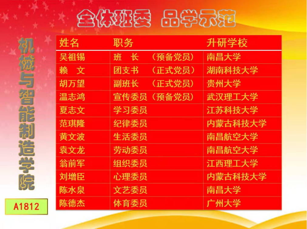 “最牛考研班委”;A1811班录取人数为22人,不少同学被武汉理工大学、东华大学等国内工科名校录取;A1813班502寝室的6名学生全部录取,为