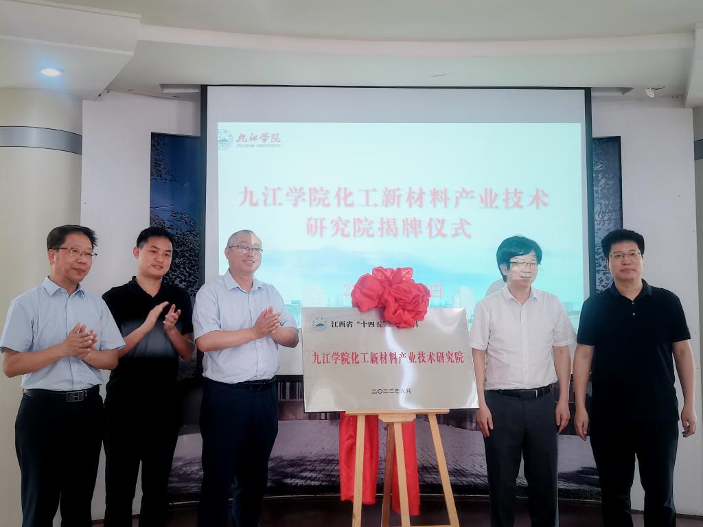 化工新材料产业技术研究院揭牌仪式在学校行政楼一号会议室举行。该研究院将主要围绕有机硅新材料、新能源相关产业中的关键技术及其产业化应用进行研究,为技术研发、成果转化和产业引领提供统筹、支撑和服务。研究院的揭牌成立,是我校积极呼应建设“创新江西”,推进校企合作,服务九江高质量发展的重要举措,将成为我校服务地方经济社会发展的重要载体。
