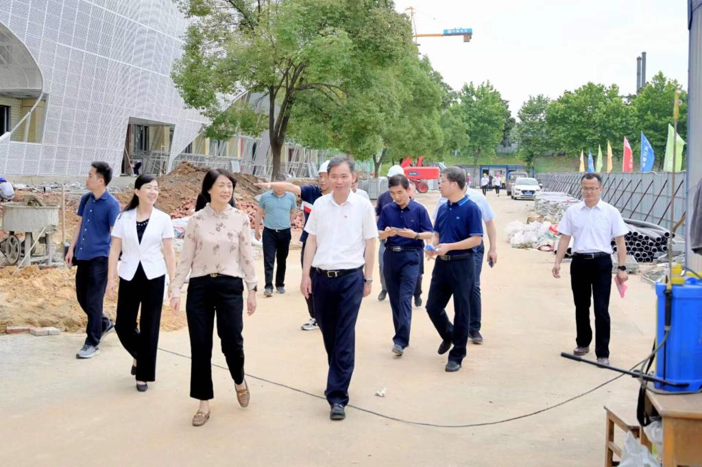 在揭牌仪式前,廖奇志一行实地考察了我校新校区建设和综合体育馆建设等项目。