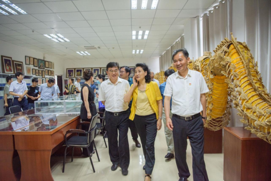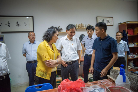 马玉玲一行还参观了我校青年艺术家吕雅明、谭丹武工作室、章新成博士工作室、万蕾老师非遗竹编传习工作坊及艺术学院非遗陈列馆,并与青年教师们进行了亲切交谈。