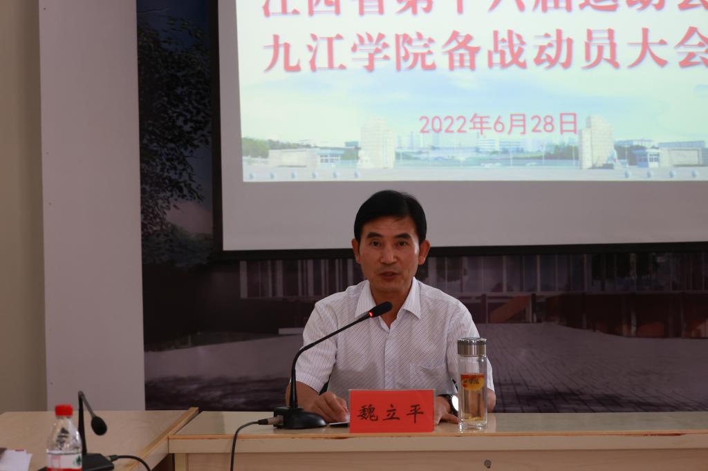 魏立平代表学校党政,对学校运动队提出了希望与要求。他强调,各有关单位和运动队要提高认识,统一思想,切实增强责任感、使命感和紧迫感,抓住省十六届运动会的契机,迅速掀起训练高潮,确保完成“团体总分超上届,金牌总数超上届”的目标任务,力争我校竞技体育水平再上新台阶。要精心组织,积极备战,注重加强赛前实战训练、针对性训练和重点项目训练,全面提高训练水平;要团结协作,规范管理,确保备战工作安全有序、保障有力。全校上下要进一步树立“一切服从于省运会、一切服务于运动队”的思想,动员方方面面的力量,提供强有力的后勤保障。