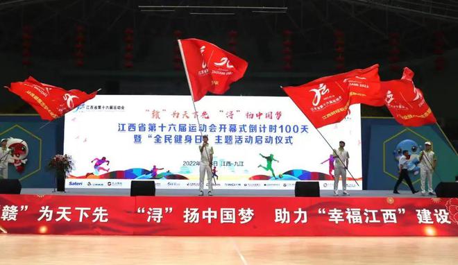8月8日上午,志愿者们在市体育中心会场参加了江西省第十六届运动会开幕式倒计时100天暨“全民健身日”主题活动启动仪式。仪式上,来自