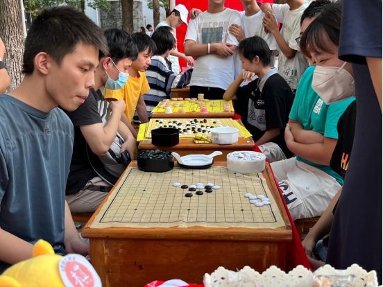 在三食堂广场上,竞技社团的成员们提前准备好棋盘棋子,等待同学们前来切磋技艺。围棋组的选手们手持黑白棋子,凝神静气,沉着对弈,看似云淡风轻,实际上步步为营;象棋组的选手们布阵点兵,着棋下子间运筹帷幄,针锋相对,博弈于楚河汉界;热烈精彩的现场吸引了许多同学的驻足,协会成员们纷纷上前为他们科普国粹的悠久历史,讲解竞赛规则,解说精彩棋局。棋艺活动让爱好棋类的同学们有展示的舞台,让广大同学得到精神熏陶,以棋养德,以棋益智。