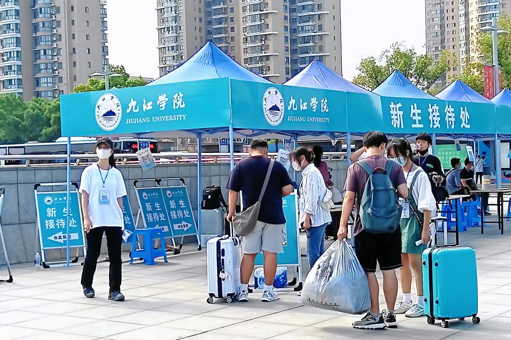 在九江火车站、汽车站、校门口、体育训练中心内外、宿舍楼前,学校积极组织动员师生为新生报到开展志愿服务。据统计,约600名九院师生参与迎新志愿服务,为新生与九院的初见留下美好的温馨回忆。