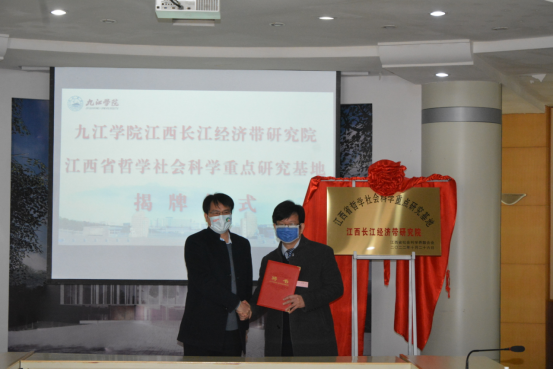 校科研处、江西长江经济带研究院、旅游与地理学院、管理学院、经济学院、资源与环境学院、法学院负责人,基地团队成员和相关专家学者参加揭牌仪式。