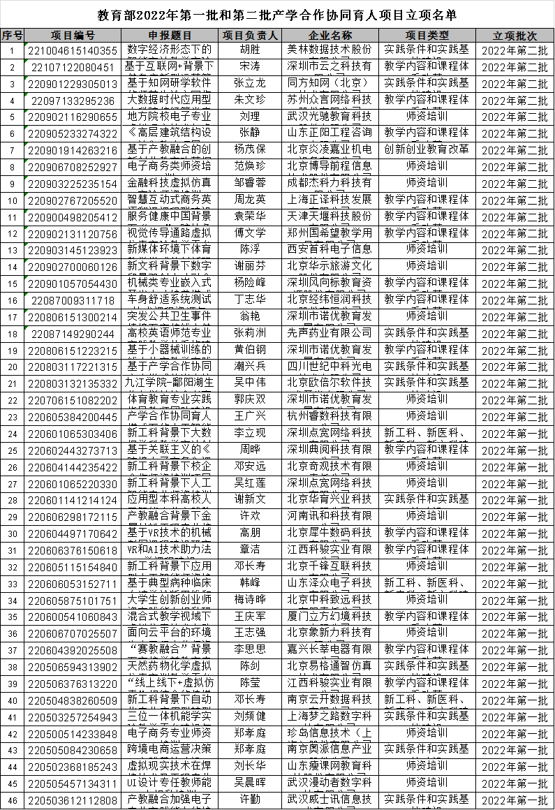 近日,经教育部高等教育司公布,我校2022年教育部产学合作协同育人项目取得佳绩,获批2022年第一批教育部产学合作协同育人项目23项,新增2022年第二批项目23项。2022年共计46项立项,位居全省本科高校第五和应用型本科高校第一。
