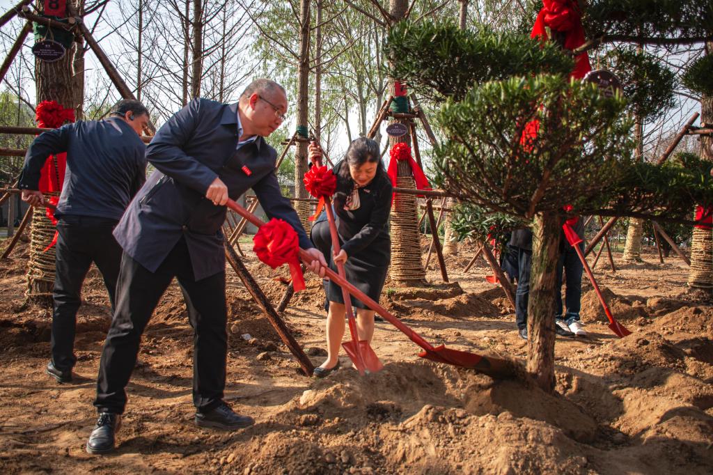 “友谊林”揭牌仪式由郑州大学党委常委、纪委书记许东升主持。“友谊林”选址在郑州大学行政楼东侧绿地,由郑州大学书法学院院长、博士生导师、中国书法家协会名誉主席张海先生题字。古朴挺拔的银杏、神韵清雅的造型罗汉松以及洒脱有度的庐山柿,与其原有树木搭配一起,显得相得益彰、景致宜人,饱含着两校师生的深情厚谊。两校师生共同挥锹培土,种植友谊树。