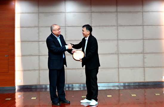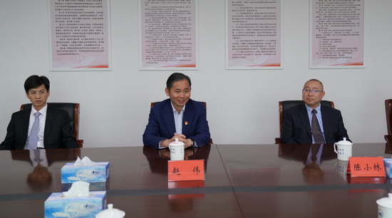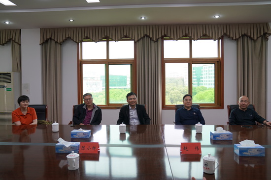 捐赠仪式前,党委书记赵伟、校长陈小林、副校长查振华亲切会见了校友刘波及随行校友。