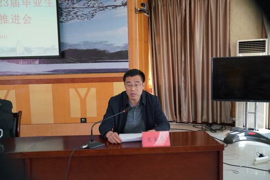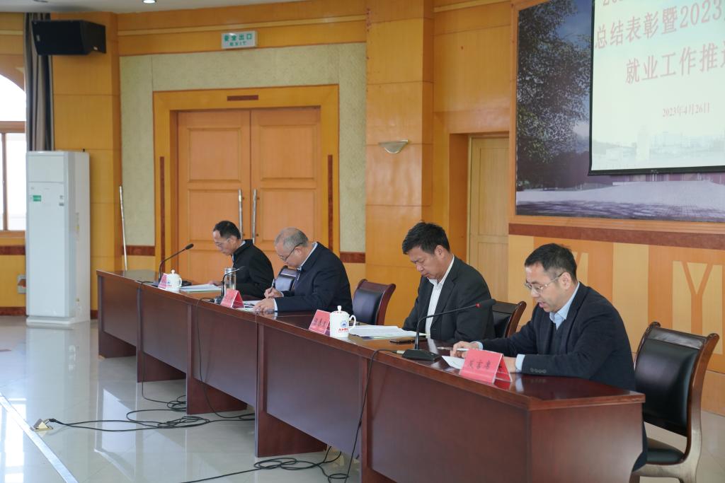 学校招生与就业处、教务处、学生处、团委、保卫处、校友办负责人,各二级学院党政负责人、就业工作专职辅导员和就业工作先进个人参加了会议。