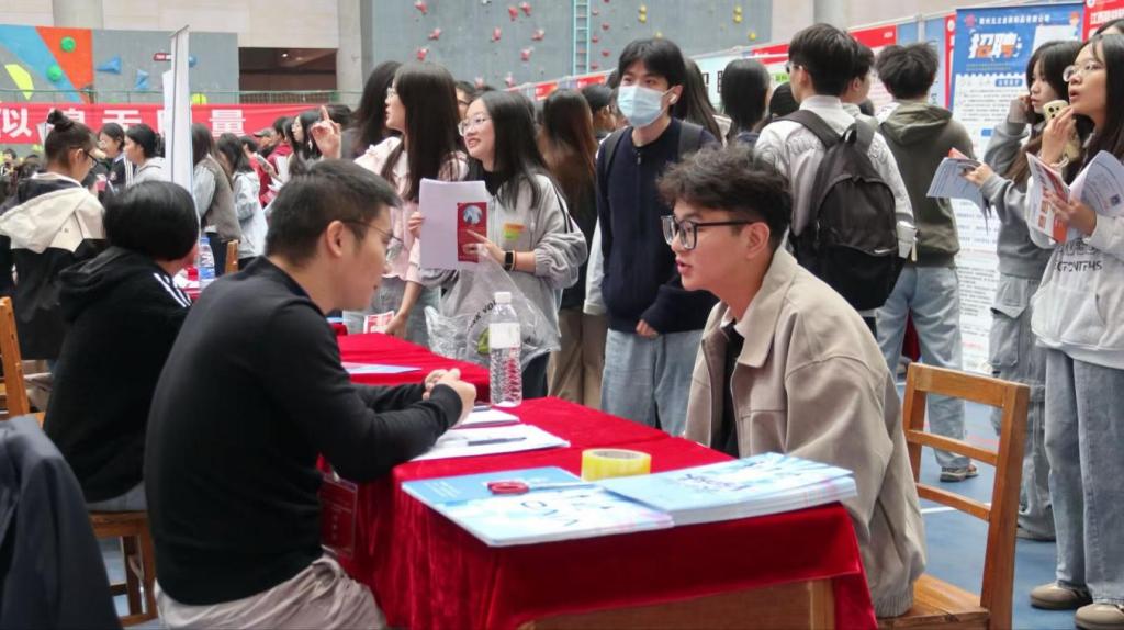 就业之家负责的“AI+人工”就业指导功能区,依托“AI就业赋能系统”与专业就业指导老师,为毕业生提供一站式求职帮扶;作为省教育厅指定“1+1+N”合作单位,九江经济技术开发区设立“AI就业岗位”专区,为广大毕业生提供全网海量岗位信息,实现与经开区企业人才需求的精准对接。两大特色专区吸引了众多同学驻足咨询,拓展了毕业生的就业渠道与发展空间。相关安排不仅丰富了岗位供给,也有效促进了区域人才流动与产业协作。