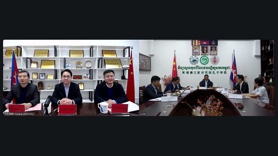 柬埔寨王家研究院孔子学院2025年理事会会议在线上顺利举行。校党委书记李明斌,党委委员、副校长雷志强,柬埔寨王家研究院院长宋独(Sok Touch)和其他理事会成员参加会议。