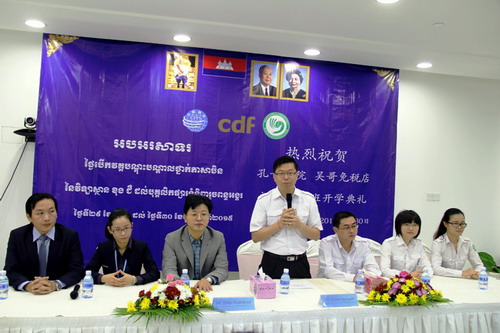 赵远昭说,近年来王家研究院孔子学院的各项工作卓有成效,在柬埔寨社会各界引起了强烈反响。此次,能与王家研究院孔子学院合作在CDF(暹粒省吴哥免税店)举办汉语学习班,机会难得,免税店全体柬埔寨籍销售人员的汉语水平必将得到大幅提高。对此,他谨代表暹粒省吴哥免税店对孔子学院的大力支持和帮助表示感谢。