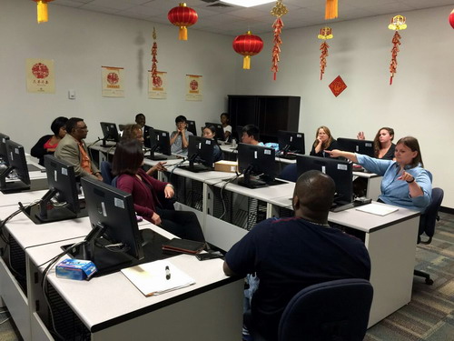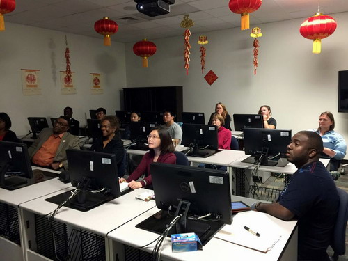 4月30日下午,美国萨凡纳州立大学孔子学院在学校图书馆二楼教室组织召开了 和萨凡纳州立大学两校交换生经验交流座谈会。参加交流会的有萨凡纳州立大学孔子学院中方院长罗其娟、外方院长Peggy Blood、国际交流中心主任Emmanuel Nanuzeyi、孔子学院教师、两校交换生代表以及计划今年参加交换项目的萨凡纳州立大学学生近20人。