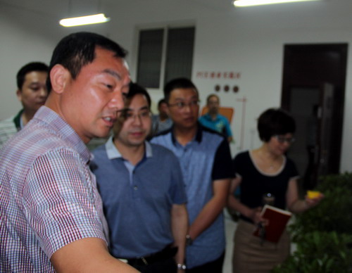 肖国丰处长一行实地参观了PUE创业实践区,查阅了相关资料,并和在PUE创业实践区的同学进行了深入的交流。随后在会议室听取了外国语学院创业工作汇报,外国语学院院长韩琨、党委书记杨杰分别就PUE创业实践区的详细情况和外国语学院就业创业工作作了介绍,党委副书记彭晓汇报学院近期创业工作,各科(室)负责人就各自分管的工作进行了专题汇报。