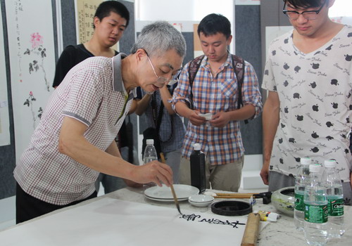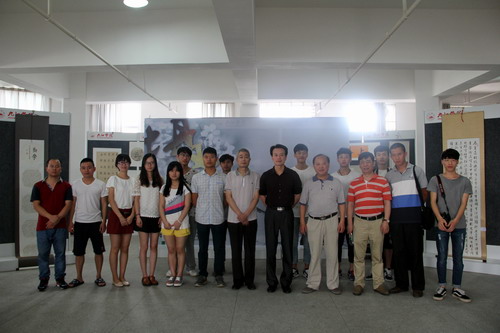 开幕式后,领导和老师纷纷为此次联展题字,并同参展的同学们一起拍照留念。