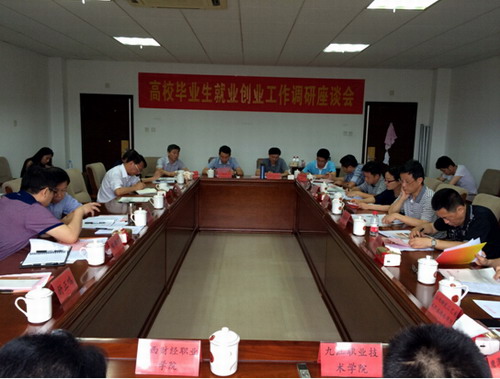 6月3日上午,江西省赣东北片区高校毕业生就业创业工作调研座谈会在景德镇陶瓷学院召开。省教育厅副厅长郭奕珊,省高等院校毕业生就业办公室主任陈学军、副主任舒正鸣、市场信息科科长王为民以及景德镇、九江、上饶地区14所本专科高职院校