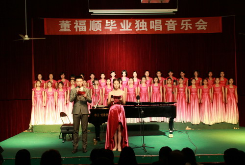 整场音乐会在一种和谐的气氛中结束,也为董福顺的大学生活画上了一个圆满的句号。音乐会结束后,学院领导上台与他亲切握手并合影留念。
